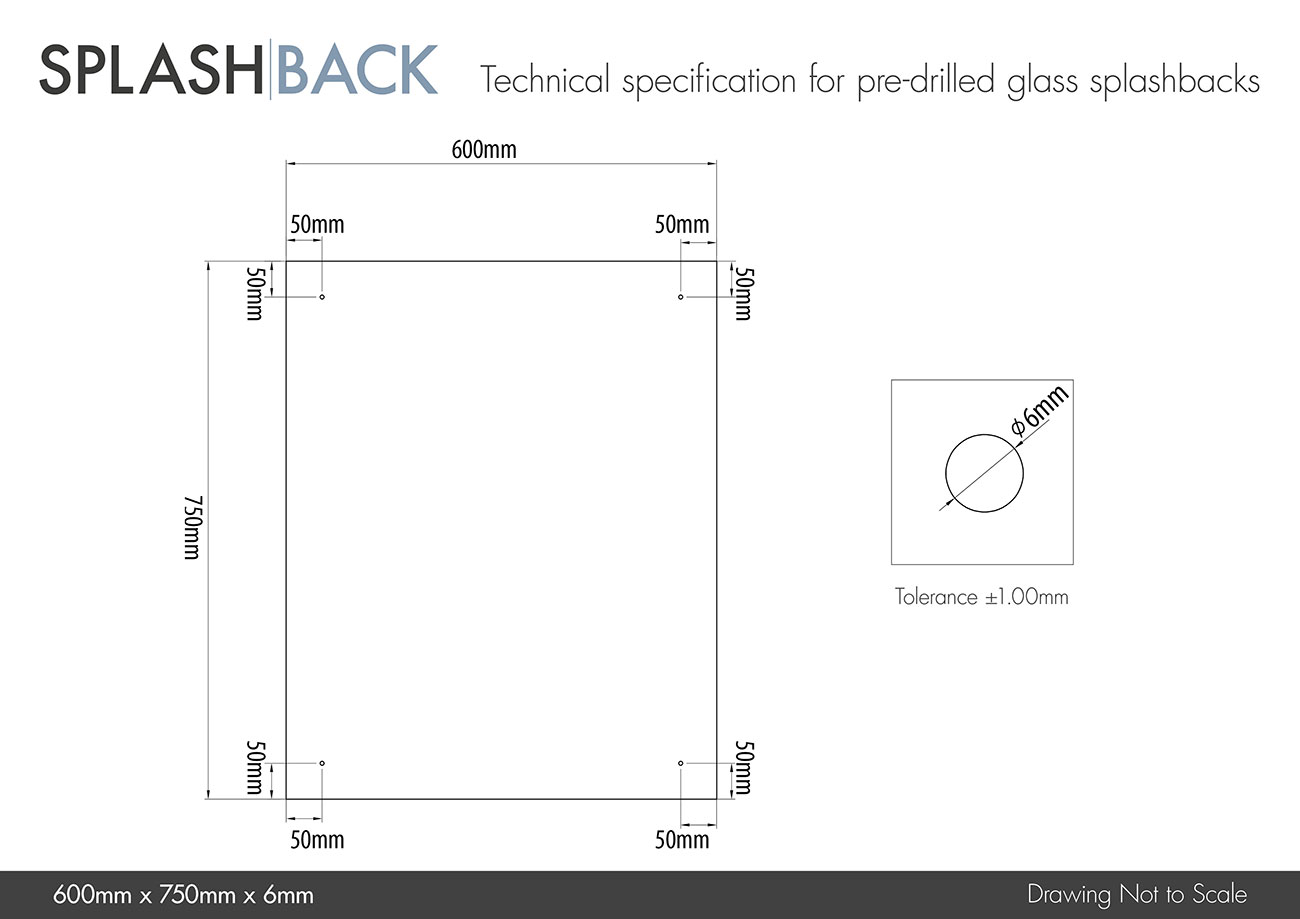 Our pre-drilled Crystal Clear glass kitchen splashbacks are available in 4 sizes: 600mm(w) x 700mm(h), 900mm(w) x 700mm(h), 600mm (w) x 750mm (h) and 900mm(w) x 750mm (h). Our pre-drilled Fluted Clear kitchen splashback is available in 1 size: 600mm(w) x 750mm.